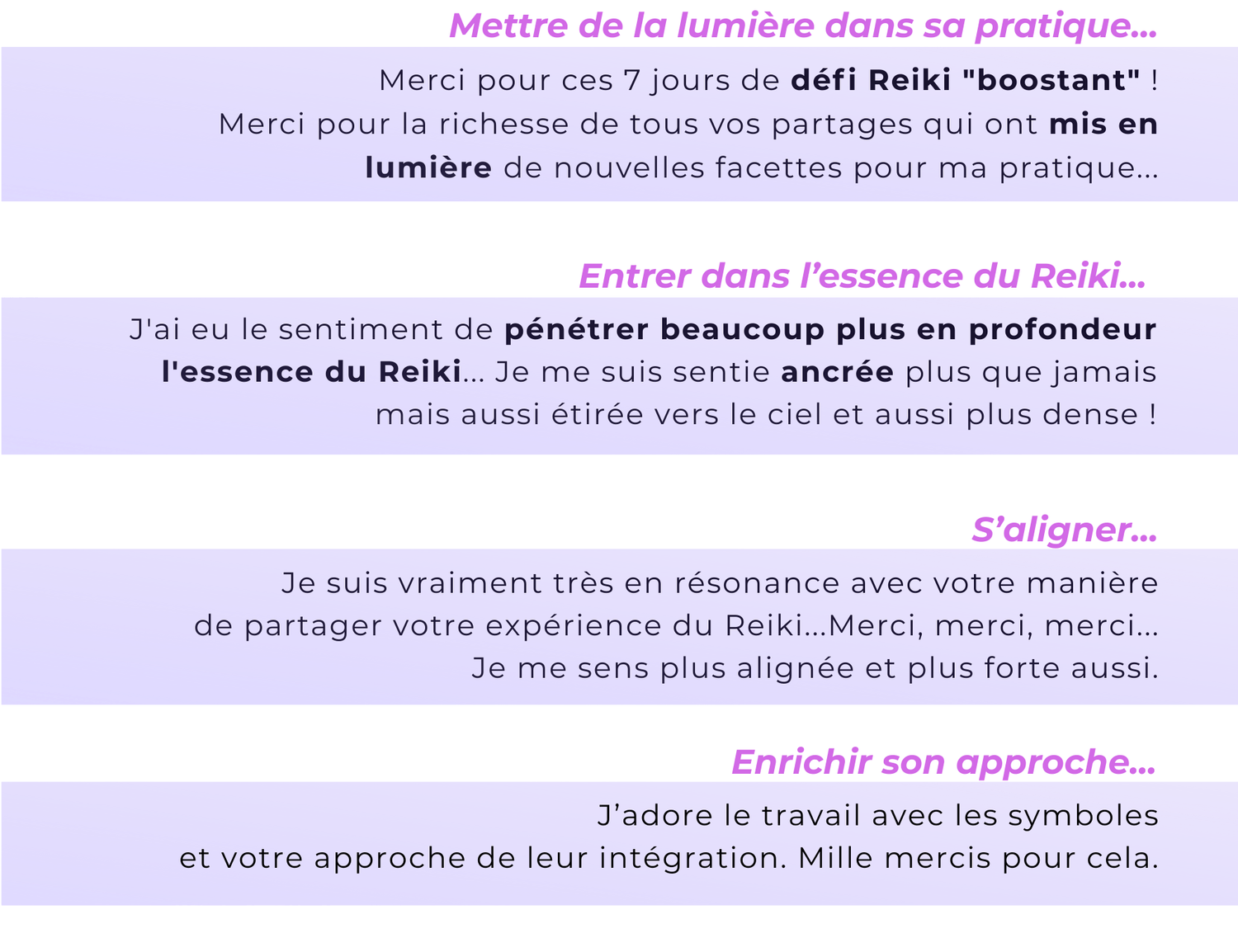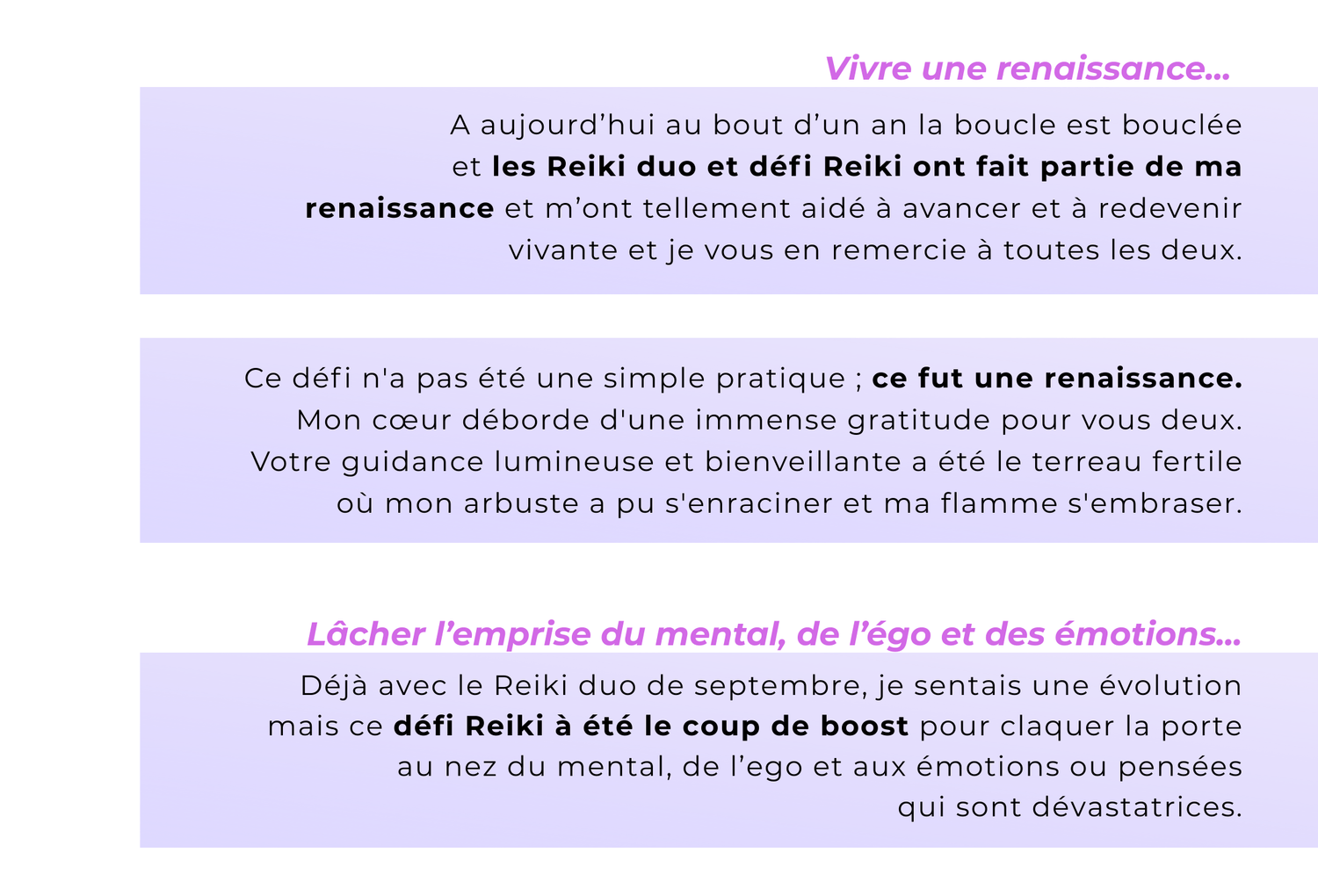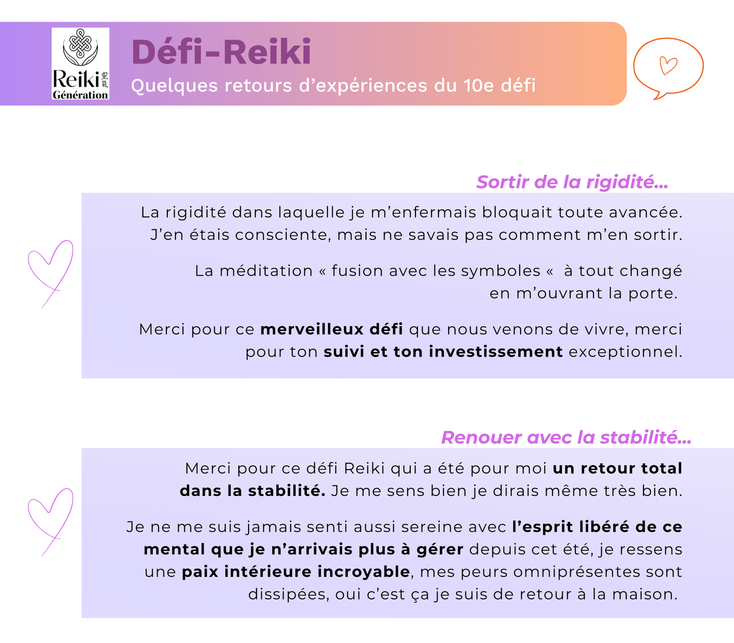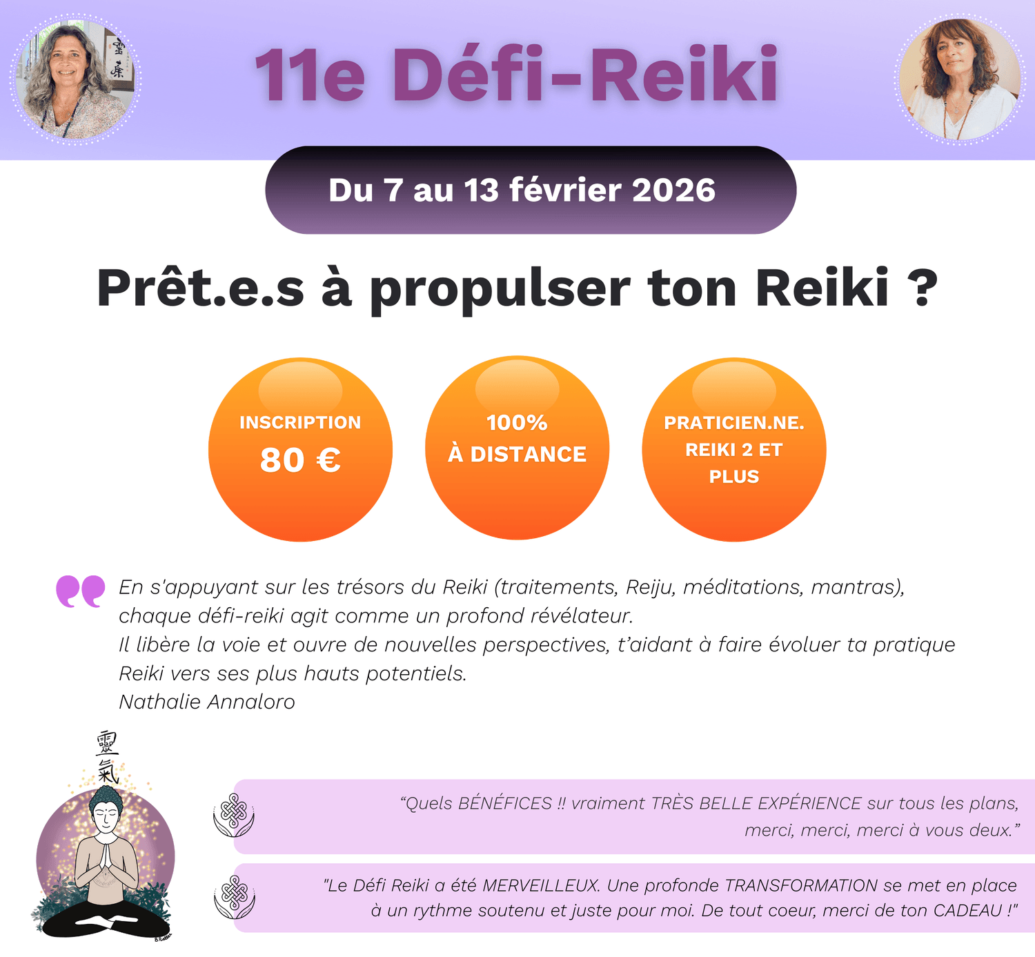 Chaque édition du Défi-Reiki est décrite par ses participants comme une expérience unique, transformatrice, et profondément soutenante.