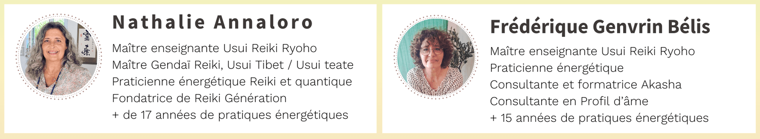 "Merci à vous deux pour ce duo Reiki,comme toujours j’accueille avec un véritable plaisir ce moment, c’est un ancrage important pour moi et au fil du temps un travail en profondeur s’inscrit en moi et je suis contente de mes progrès !"