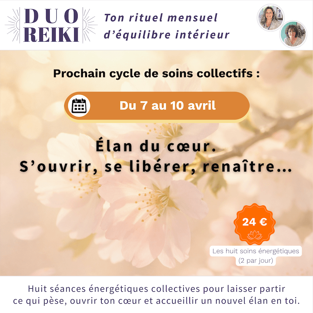 Nos séances énergétiques collectives Duo Reiki sont ouvertes à tou.te.s, initié.e.s et non initié.e.s au Reiki.